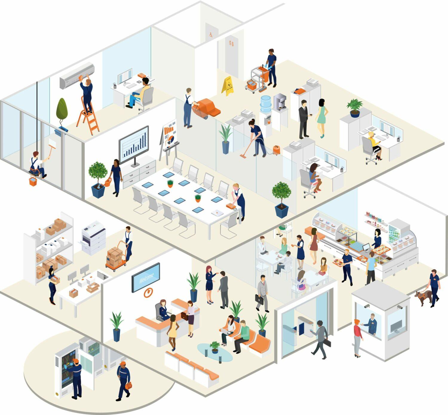 We operate in tens of thousands of work, living and leisure spaces. We maintain and secure them, we make them healthier, warmer and more functional so as to provide a unique experience for their occupants and users, while ensuring their value as an asset.